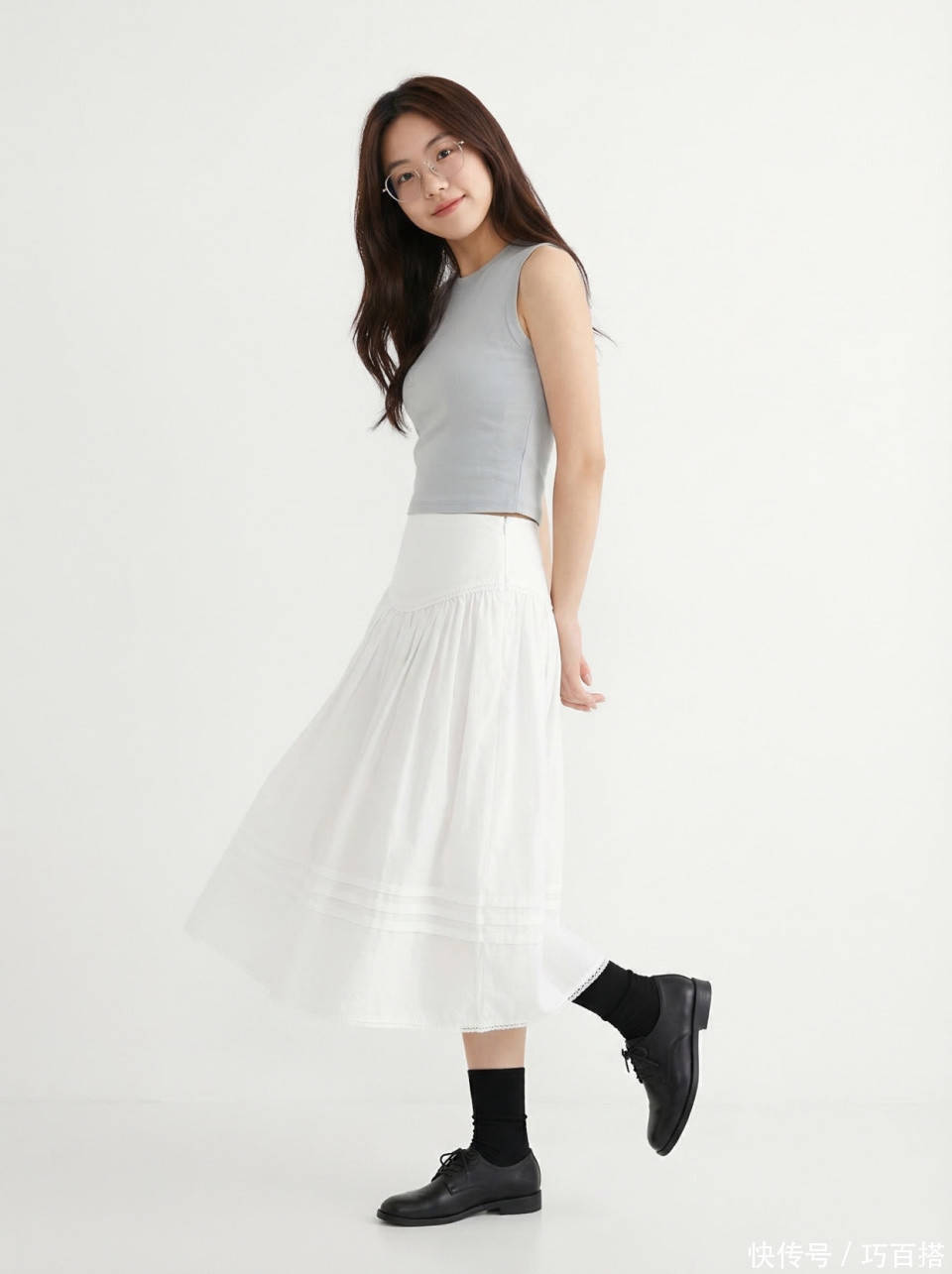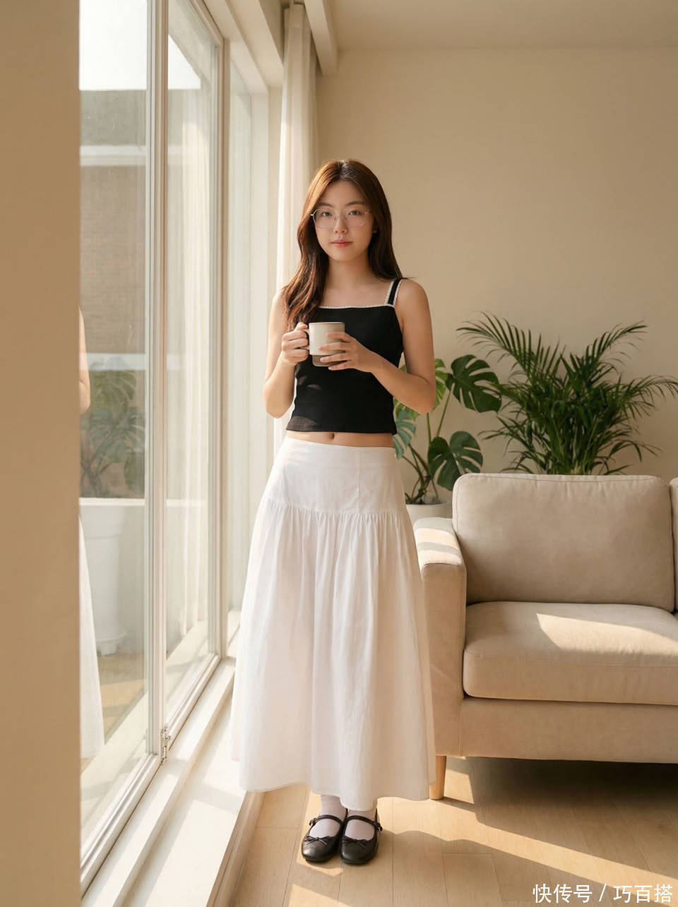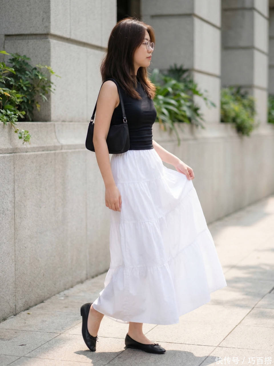 夏天选择白色半身裙时,并不需要在裙装面料上偷工减料,从博主上身效果来看,能穿出高级美感的依然是不露腿的及踝长度,贸然选择不过膝长度反而会适得其反。
