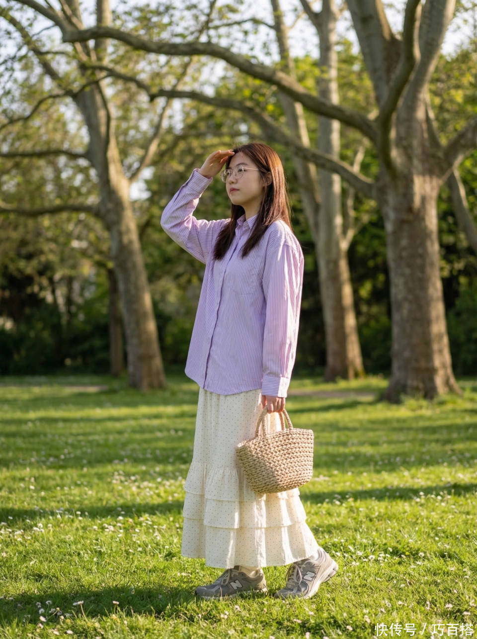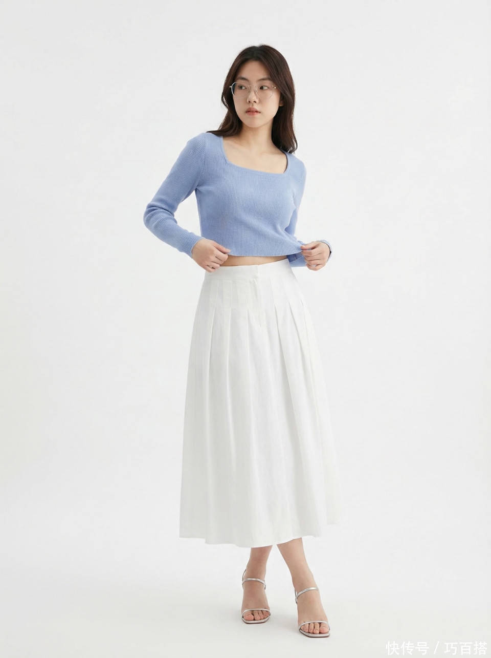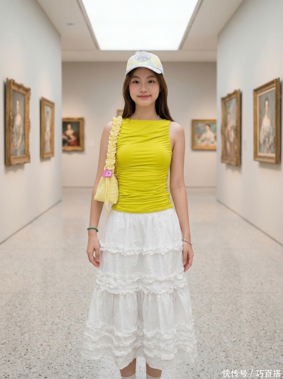 夏天选择白色半身裙时,并不需要在裙装面料上偷工减料,从博主上身效果来看,能穿出高级美感的依然是不露腿的及踝长度,贸然选择不过膝长度反而会适得其反。