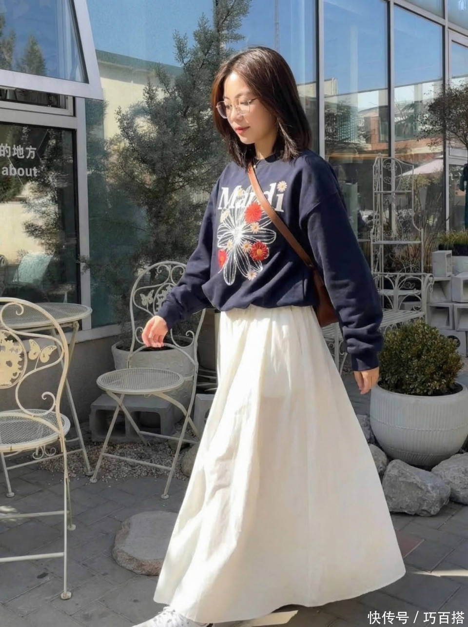 也可以像博主一样直接选择卫衣+白色初恋裙的穿法,宽松肥大的款式与宽松半裙搭配,慵懒随性,洒脱肆意。