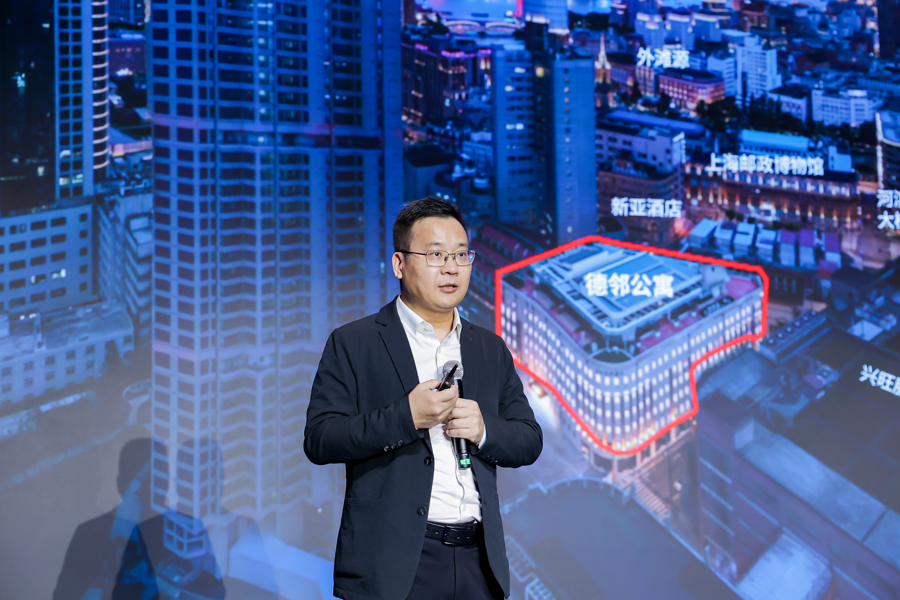 作为一名建筑师,我今天从微观的角度分享我们总部的所在地——优秀历史建筑德邻公寓。这座历史建筑位于北外滩西侧,地处黄浦、静安、虹口交界,距外滩800米,是“一江一河”的交汇点。