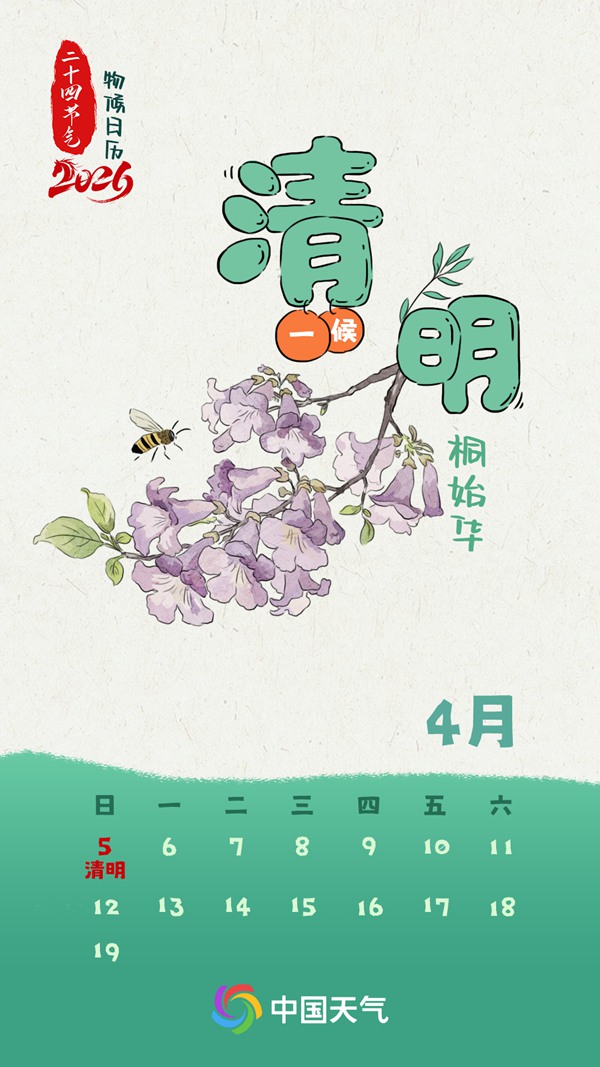 中国天气网讯 时光流转,岁月更迭,跟着物候图鉴,读懂二十四节气。今天(4月5日),我们迎来春季的第五个节气——清明。这个时节,既有“梨花风起正清明”的明媚春光,又有“清明时节雨纷纷”的细腻绵长。中国天气网联合中国气象局二十四节气重点开放实验室推出清明节气全国雨纷纷分布地图,看清明时节哪里最易遇雨。